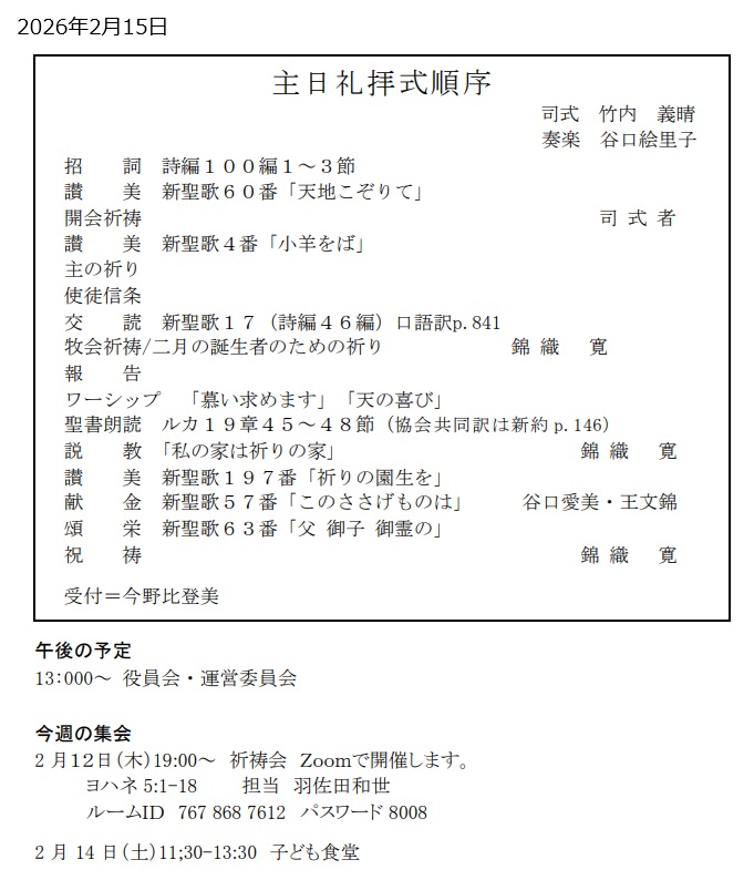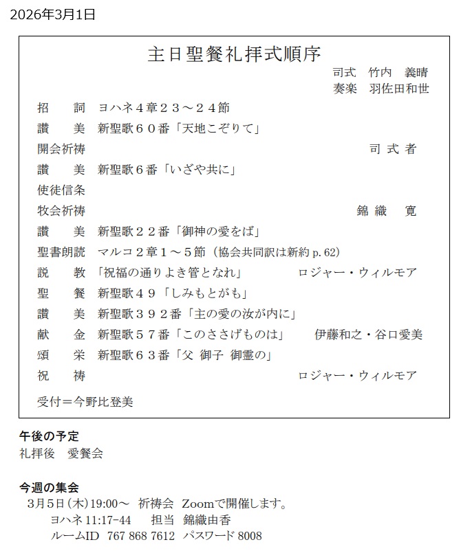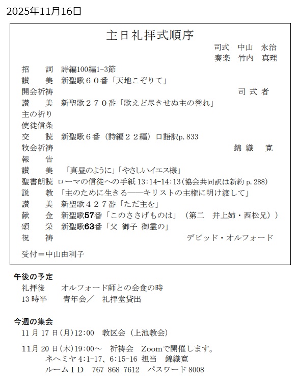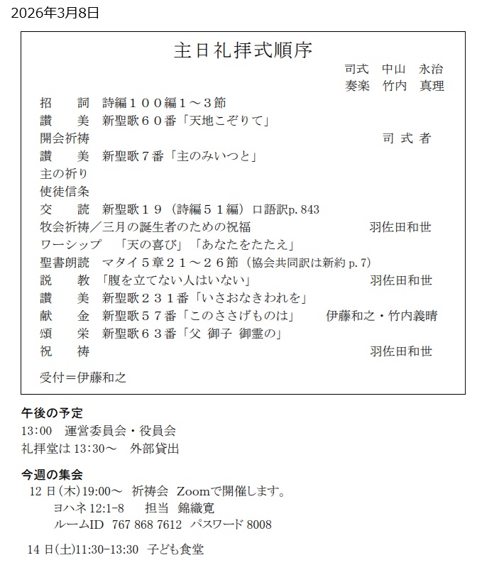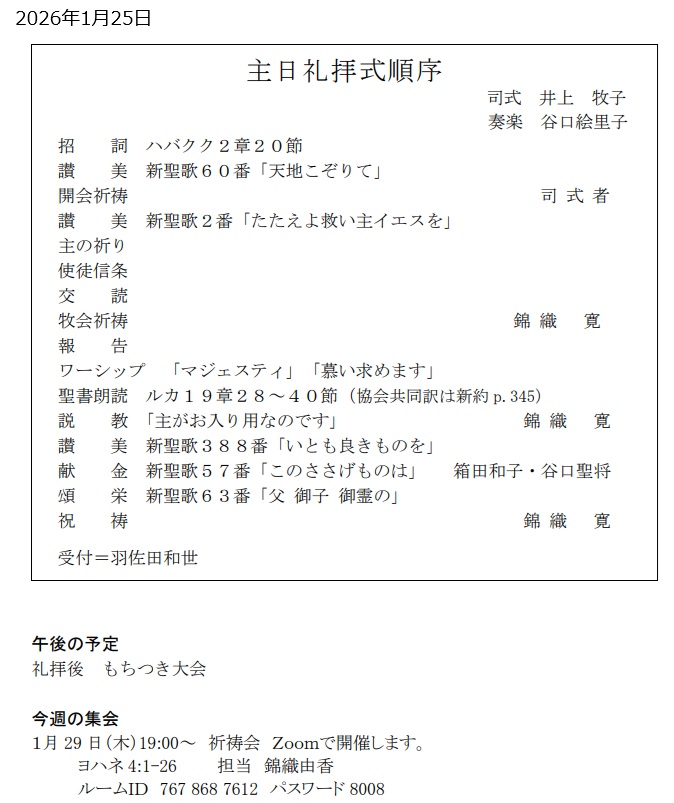 最近の礼拝説教