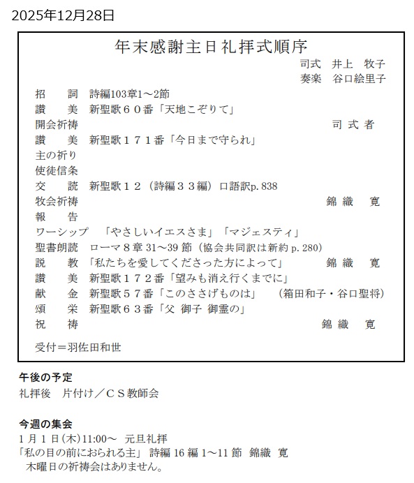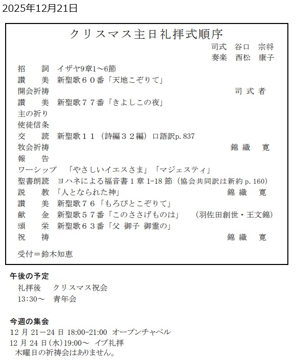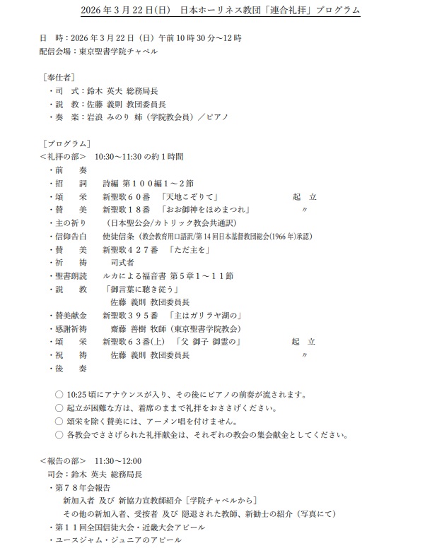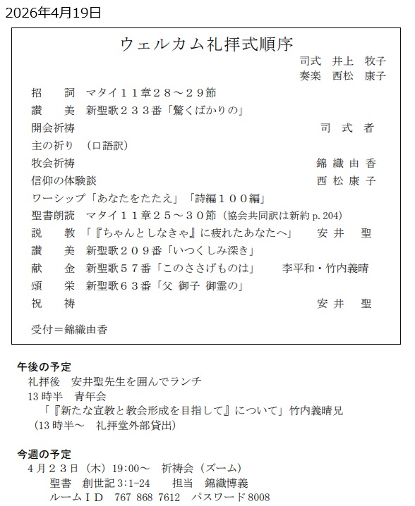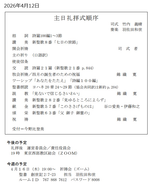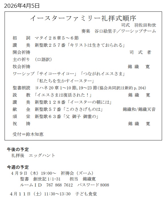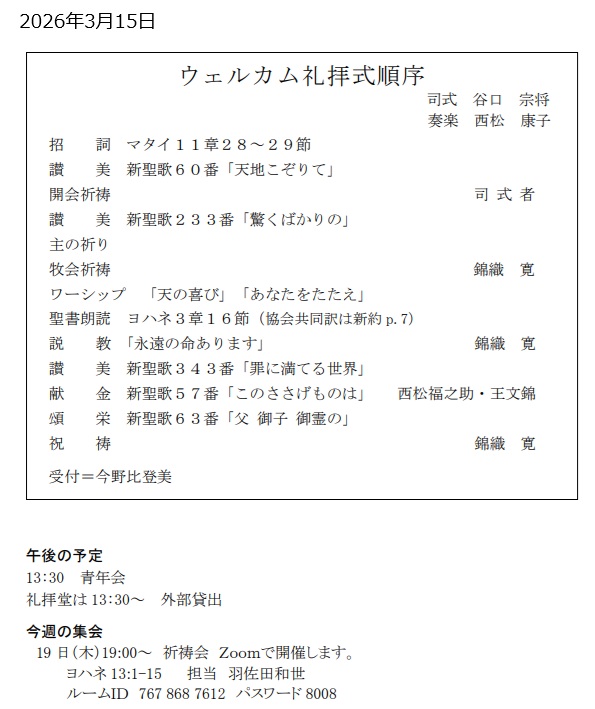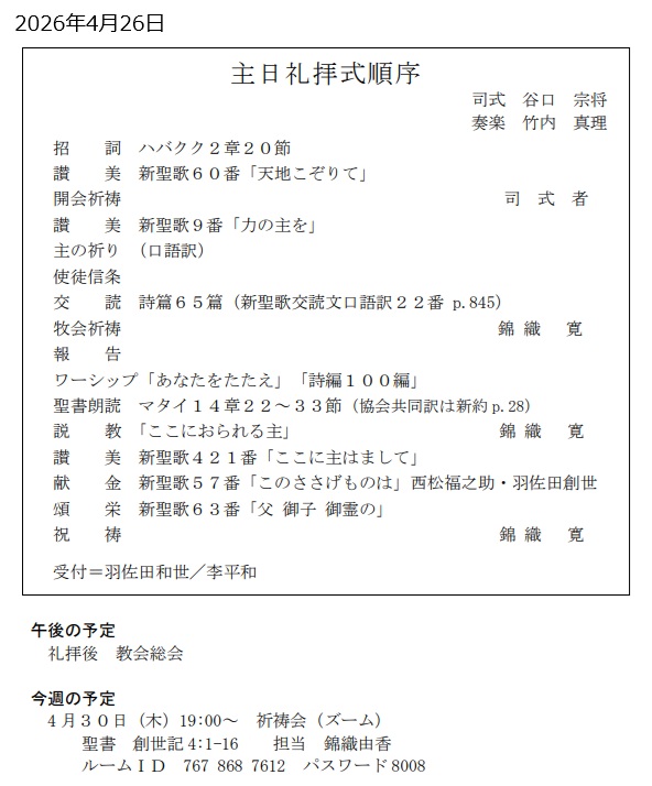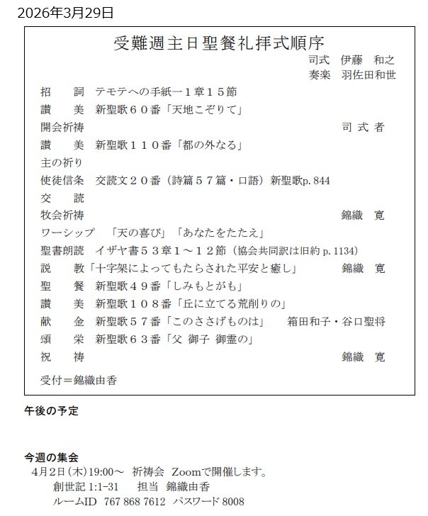 日曜日、第二礼拝(10:30~)は、ライブ映像配信を行っています。