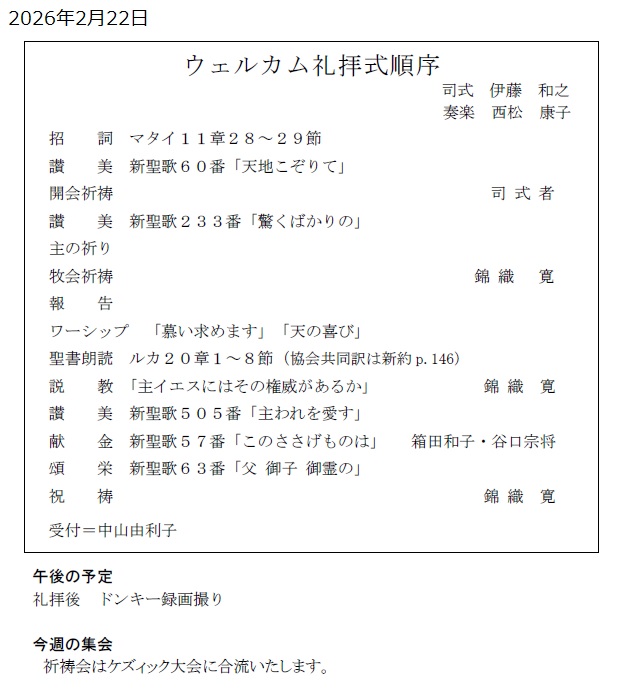 2026年2月22日(日)